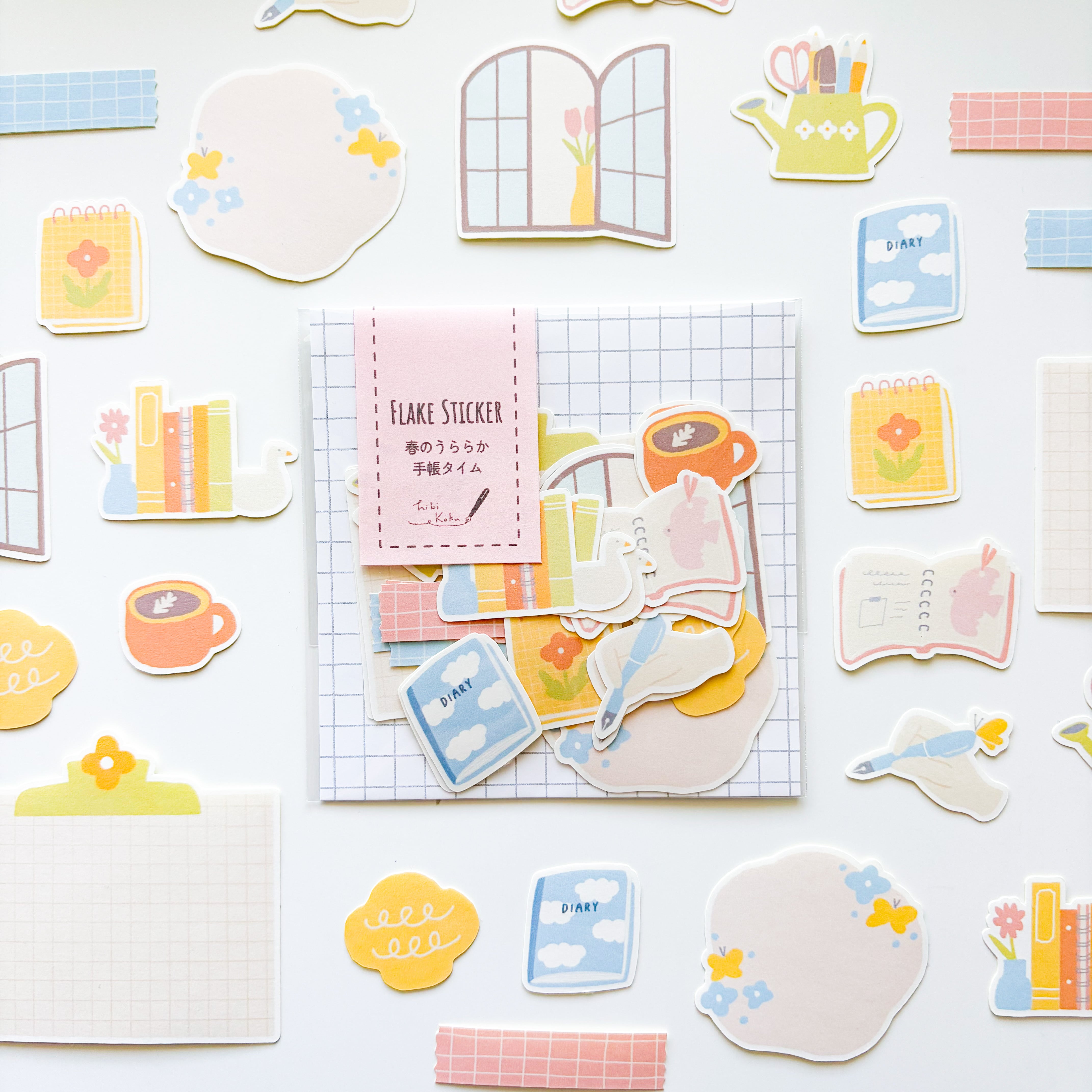 あたたかでうららかな、春の手帳タイムをイメージしたフレークシールのセットです。