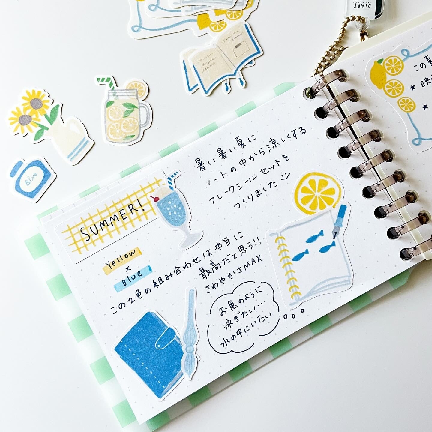 ブルーとイエローをメインに、涼しげな手帳タイムをイメージしてみました。