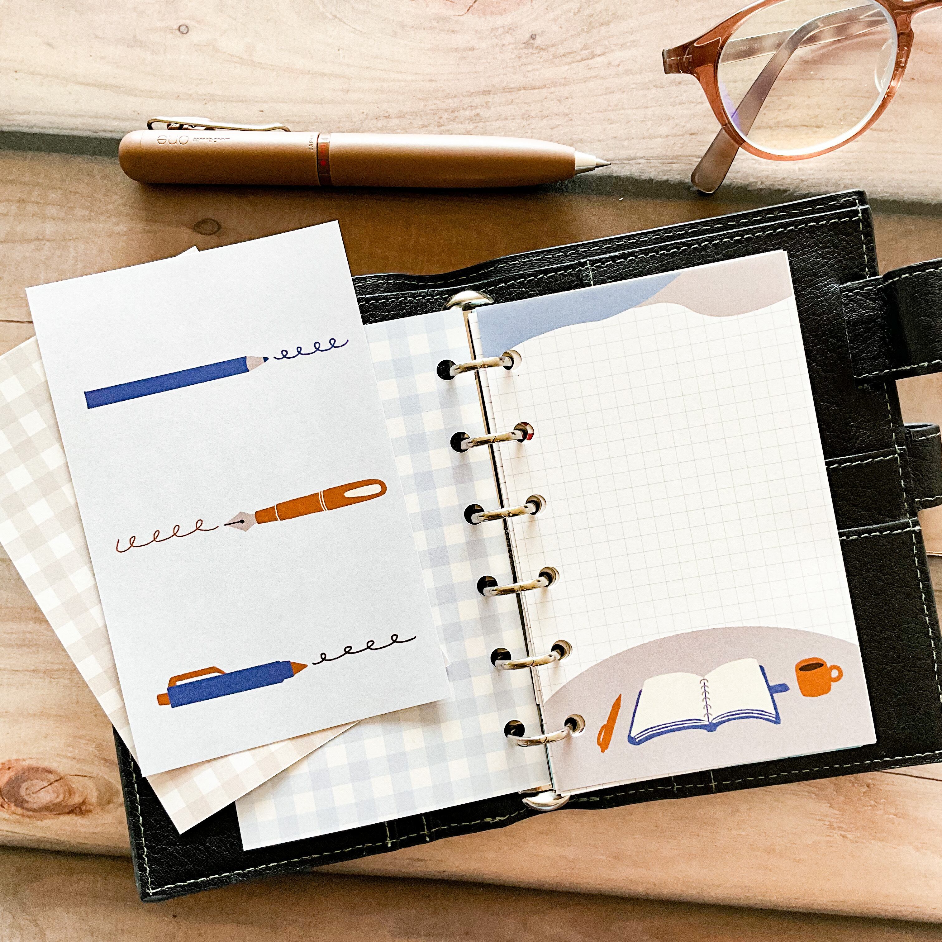 手帳タイム中の机の上をイメージした、メモセットです。