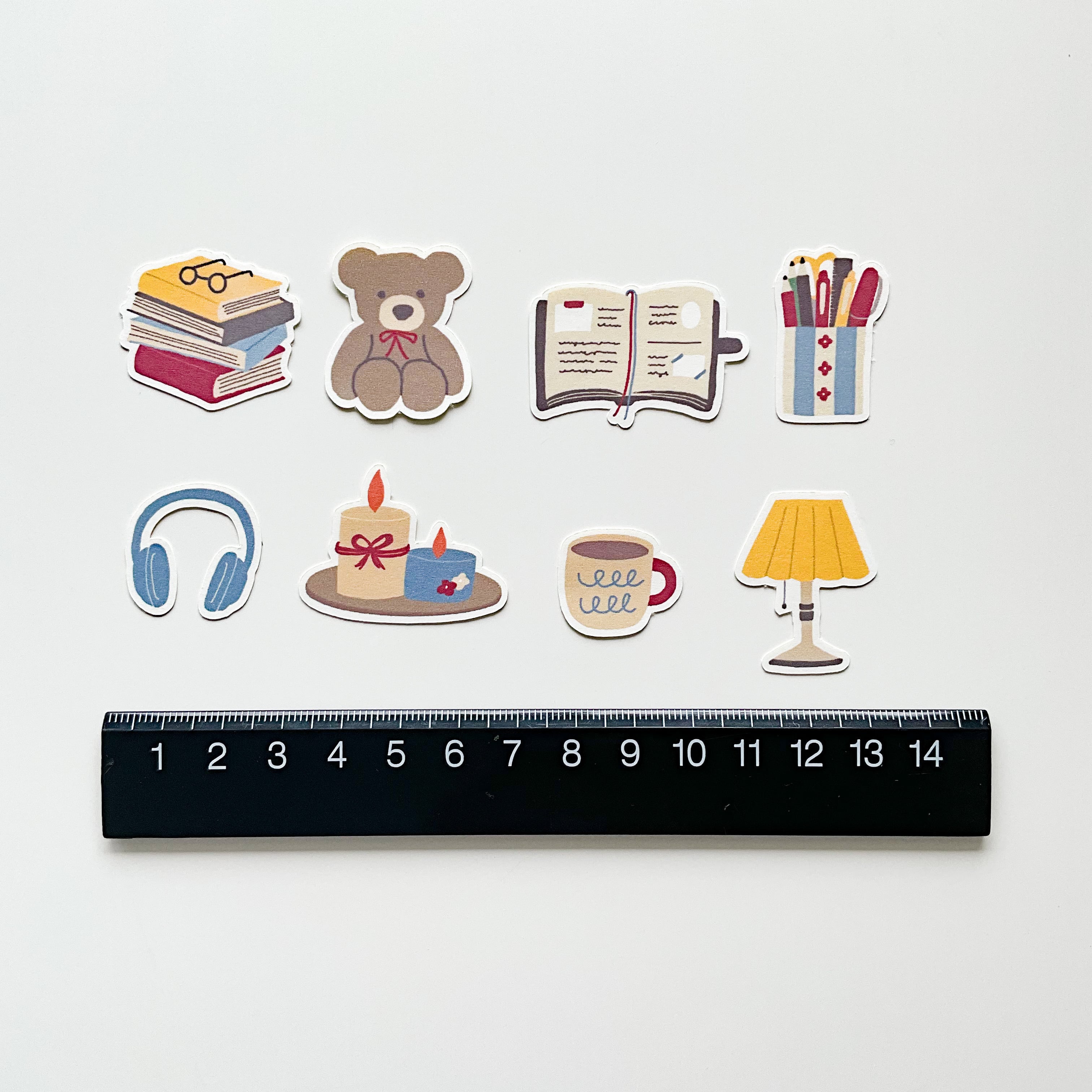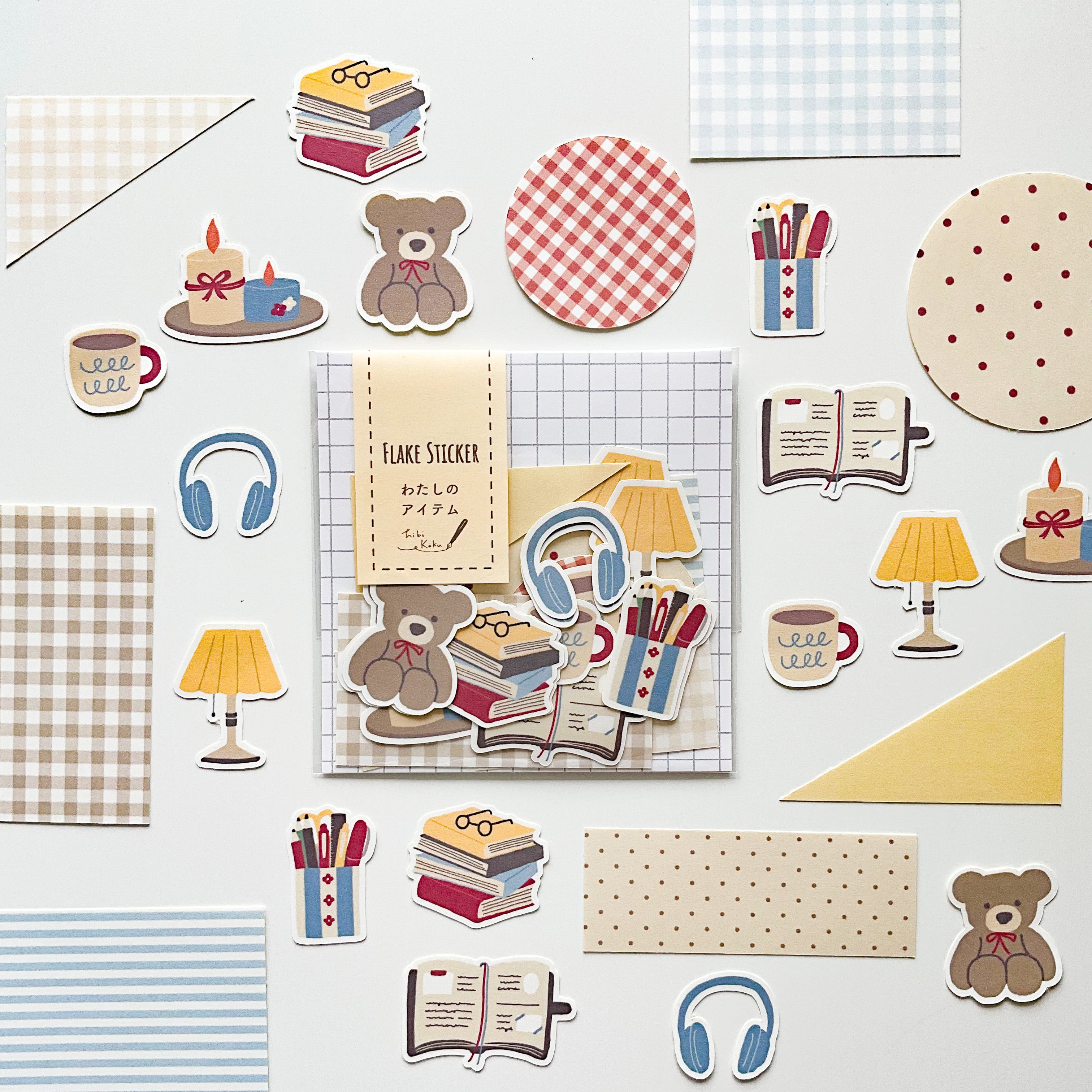 お気に入りのアイテムだけを集めた、居心地の良い部屋の中をイメージして作ったフレークシールのセットです。