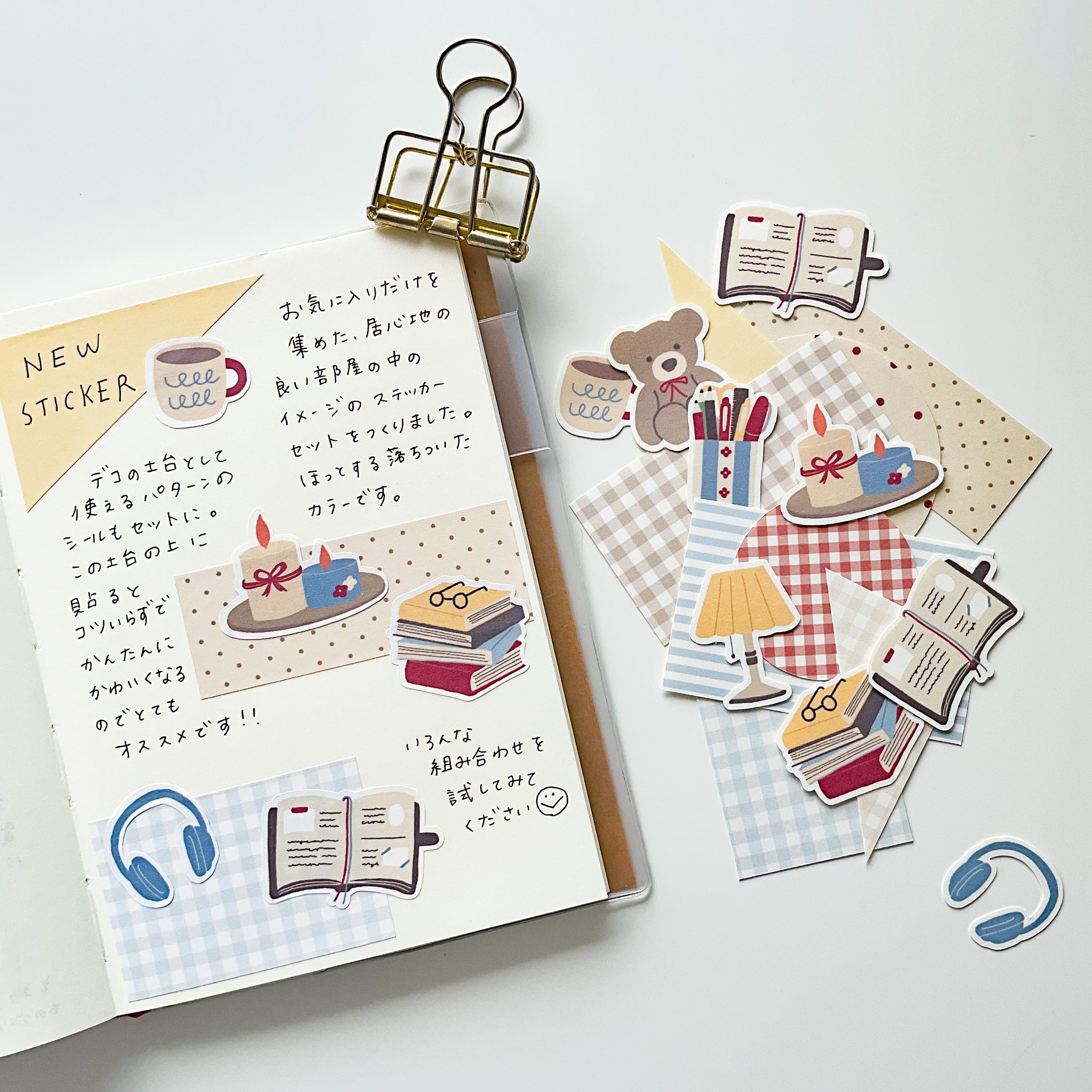 イラストのアイテムシールと、組み合わせて使える大きめのパターンシールが入っています。
